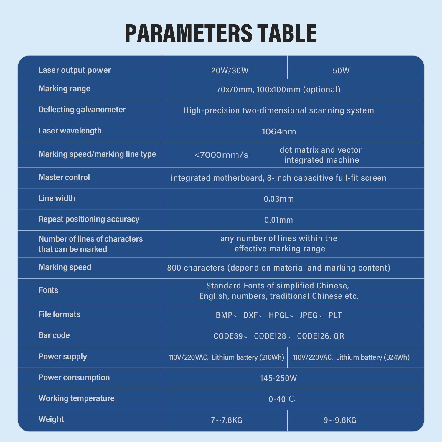 • Portable and Convenient for Outdoor Use: The dual power supply system and long battery life make this laser marking machine highly suitable for on-site, outdoor applications