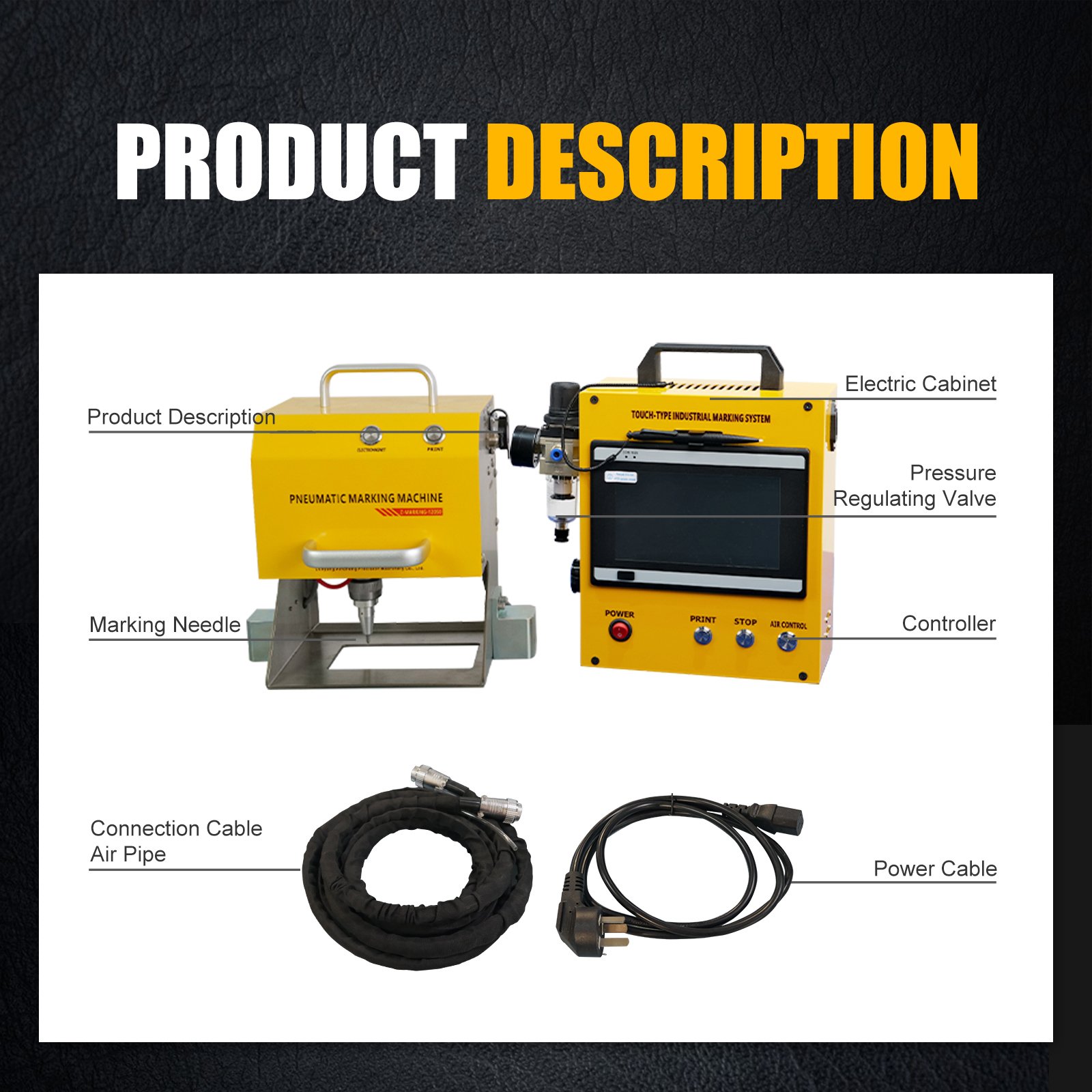 - Hard alloy marking pin can mark materials within HRC60 of metal and plastic.